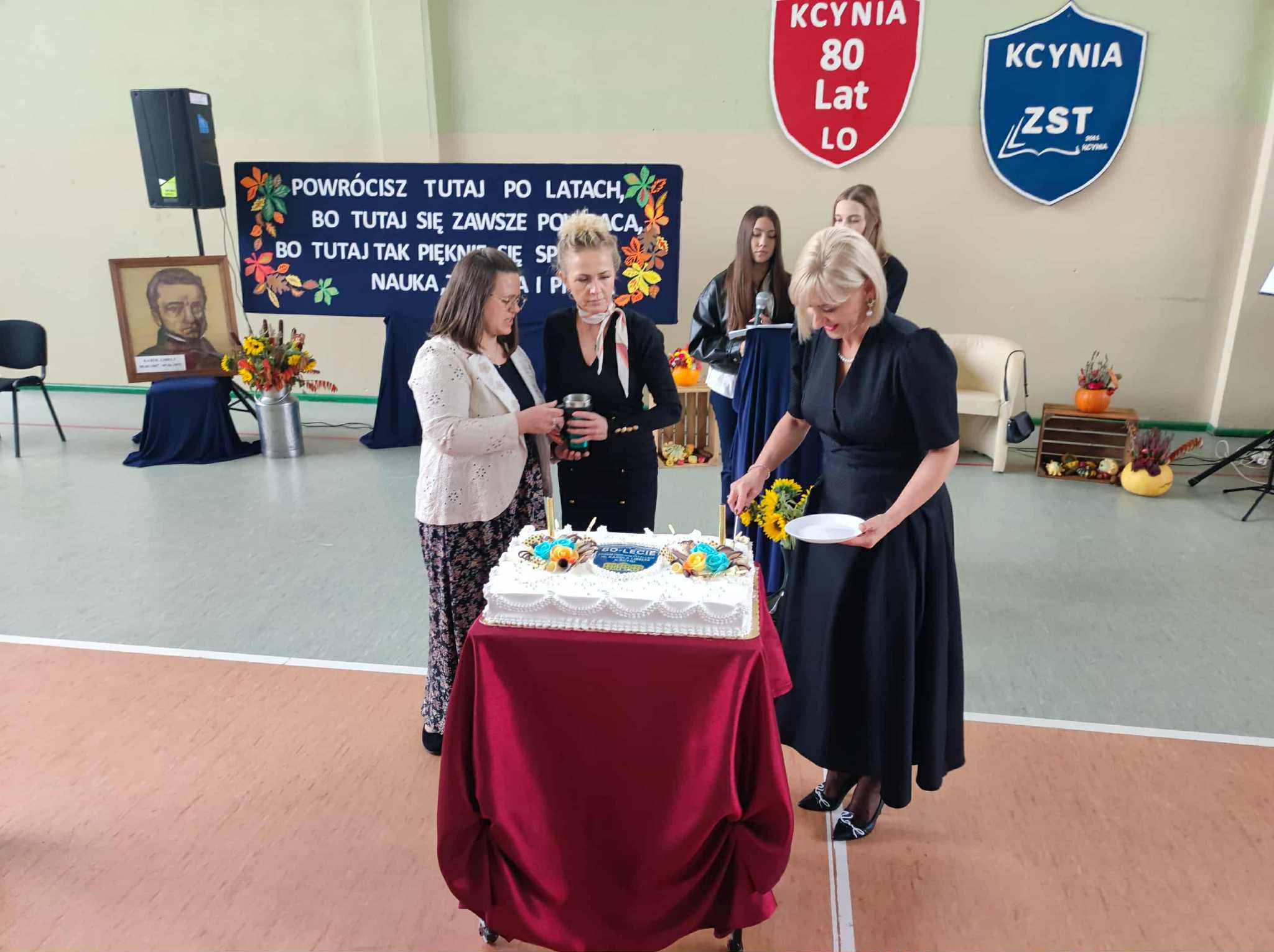 przy dźwiękach “Sto lat”. Symboliczny pierwszy kawałek ukroiła pani Dyrektor