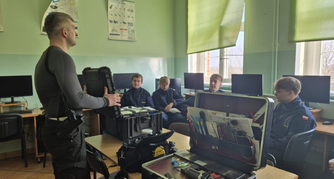 W dniu 10 marca 2026 roku uczniowie oddziału służb mundurowych z Zespołu Szkół Technicznych w Kcyni mieli wyjątkową okazję uczestniczyć w spotkaniu z technikiem kryminalistyki, który odwiedził naszą szkołę w ramach zajęć edukacyjnych. Podczas wizyty gość zaprezentował specjalistyczny sprzęt wykorzystywany w pracy technika kryminalistyki, omawiając jego zastosowanie w codziennej pracy związanej z wykrywaniem przestępstw oraz zabezpieczaniem śladów. Uczniowie mogli z bliska zobaczyć narzędzia służące m.in. do ujawniania i zabezpieczania śladów kryminalistycznych. Szczególnym zainteresowaniem cieszył się …